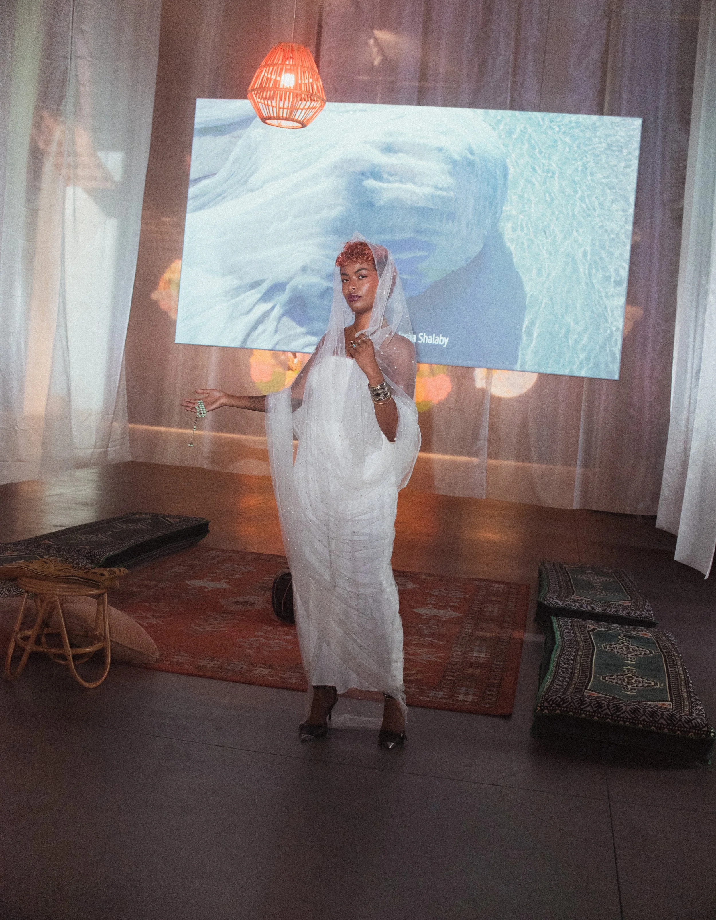 99 Names is an immersive, audio-visual performance examining themes of loss, grief and connection through the Afro-Arab diaspora. Combining rituals of oral storytelling, audio-visual installation and live performance, 99 Names shares a story of the kinetic traditions that bind us. This work asks audiences to sit with the griefs of colonization and invites them to imagine how we can collectively hold, transmute and ultimately release this weight.