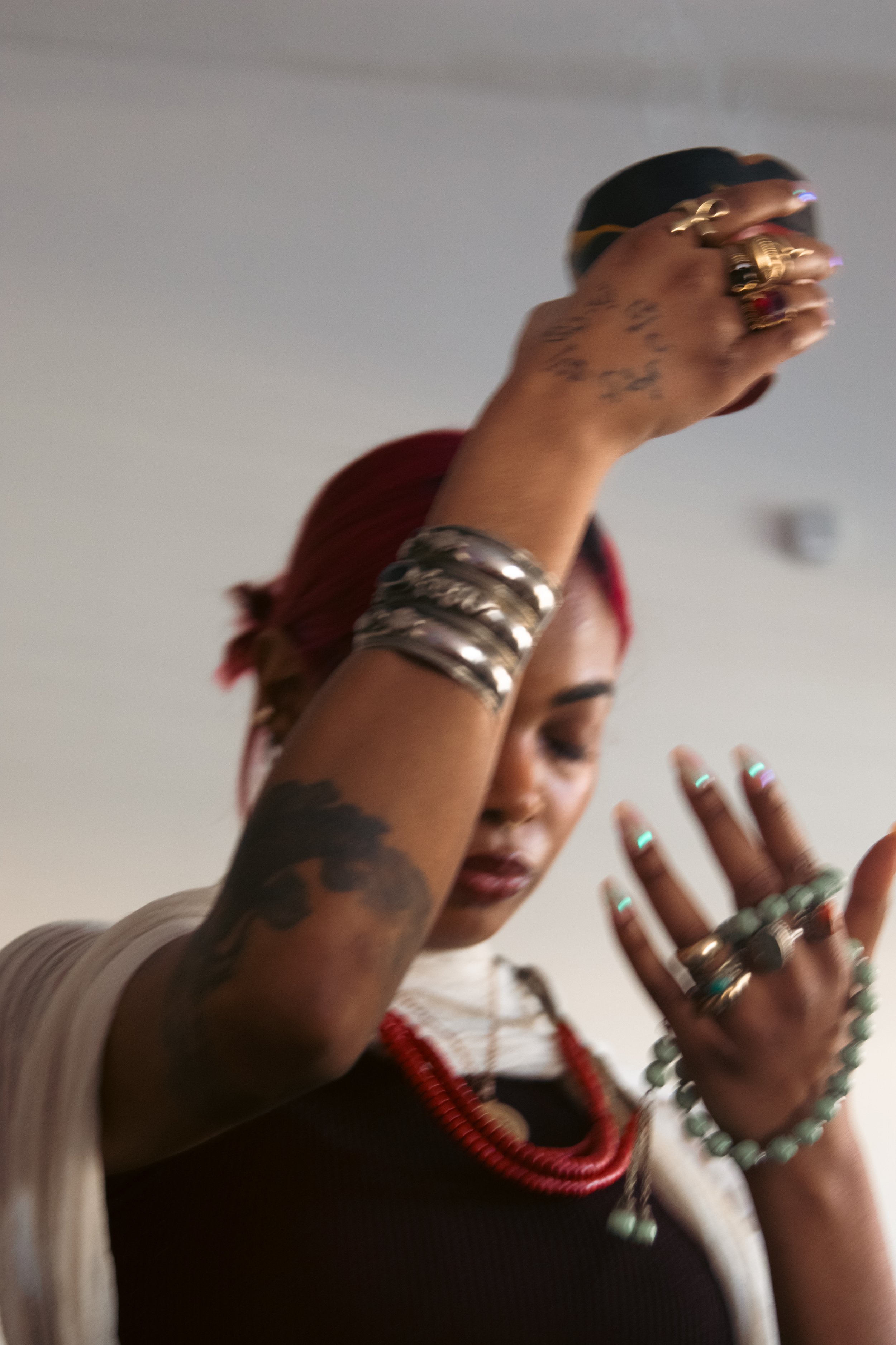As a writer, producer and visual artist, she examines embodied narratives of movement, identity, and belonging across diasporic portals.
